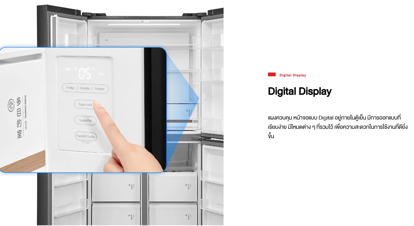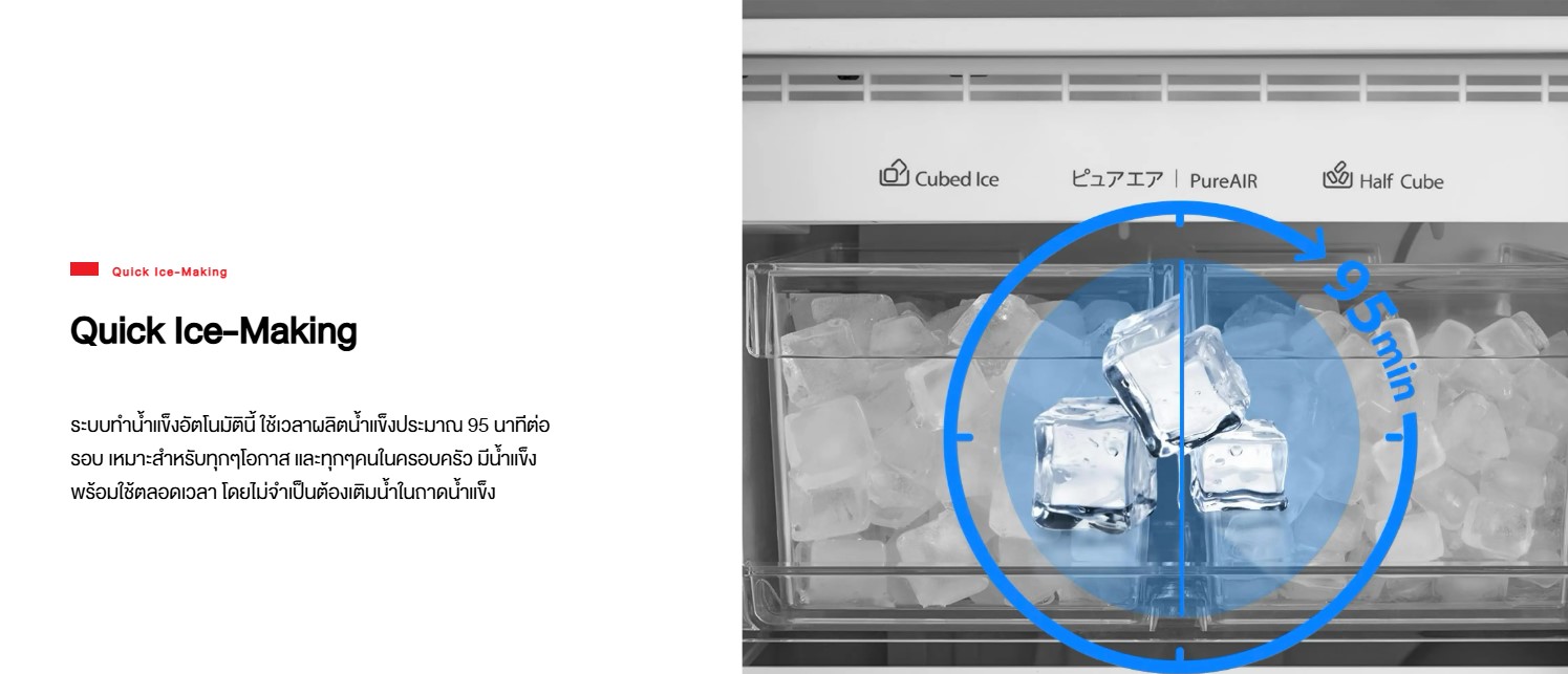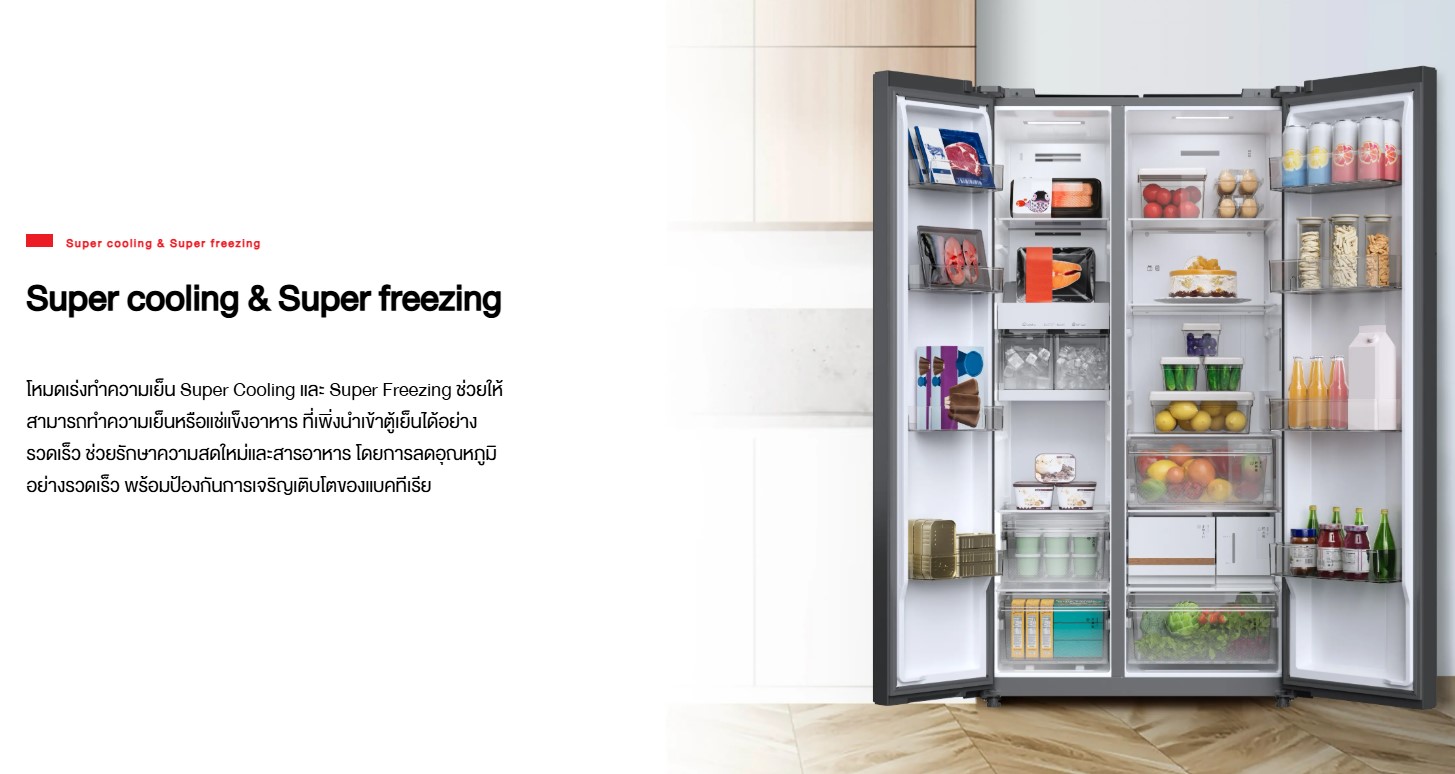 Preserve the freshness of ingredients and keep beverages and foods chilled with a TOSHIBA SIDE BY SIDE refrigerator. It features an electronic Pure Air odor removal system that releases ions through the cold air vents in both the freezer and refrigerator compartments. To effectively absorb unpleasant odors and kill bacteria, the new Pure Air Turbo mode filters odors and eliminates bacteria up to 3 times faster (compared to the normal PureAIR mode). This is ideal for foods with strong odors, such as durian, fermented fish sauce, etc.