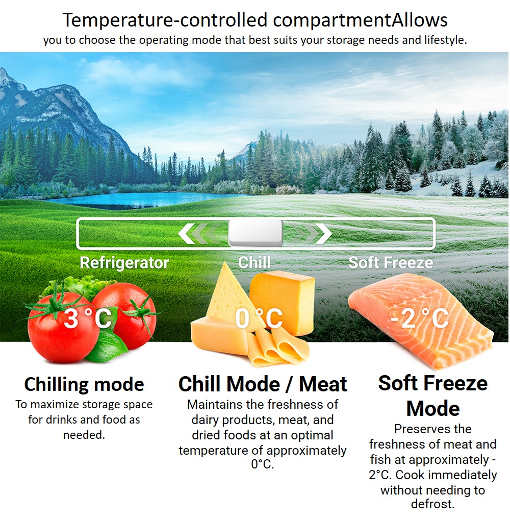 Keep your ingredients fresh for longer with HITACHI's Side-by-Side refrigerator. Featuring inverter technology and a dual-circuit cooling system, it ensures even and consistent cooling throughout. A special feature is the adjustable temperature compartment with three settings, which also eliminates odors to keep your food fresh and clean. An automatic ice maker ensures you always have ice available.