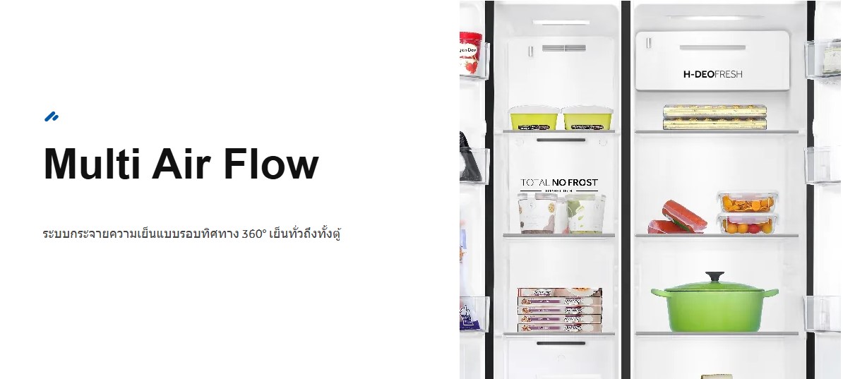 Keep your food fresh with the HRF-SBS636MS 21.7 cu ft Side-by-Side Refrigerator. This large refrigerator boasts a spacious 616-liter capacity, perfect for cooking enthusiasts, thanks to its ample interior space. It features a Twin Inverter system for quiet operation and maximum energy efficiency.Equipped with H-Deo Fresh technology, it eliminates odors and inhibits bacteria inside the refrigerator, ensuring your food stays fresh and free from unpleasant odors.