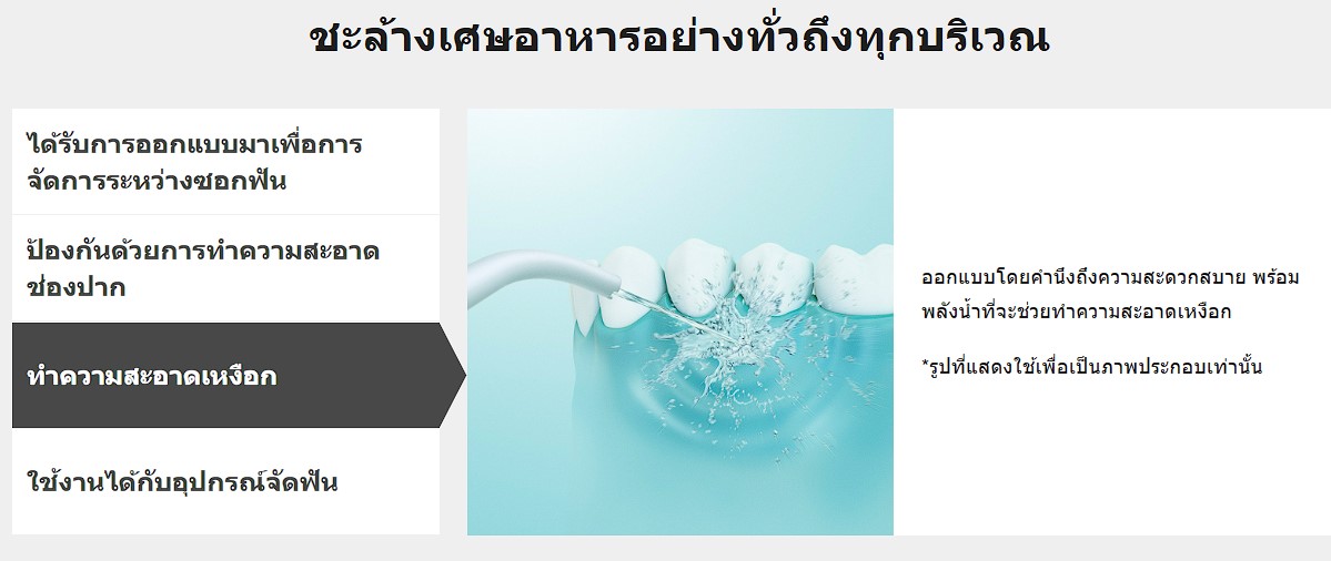 เข้าถึงพื้นที่ระหว่างซอกฟันได้อย่างง่ายดาย เพื่อขจัดเศษอาหารด้วยการฉีดน้ำ