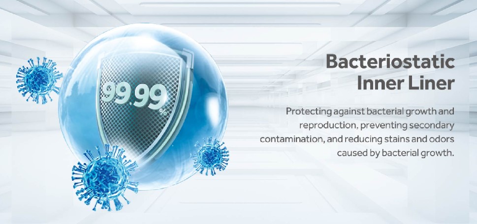 ผนังภายในและขอบยาง เคลือบสารยับยั้งแบคทีเรีย มั่นใจในความสะอาดและปลอดภัย