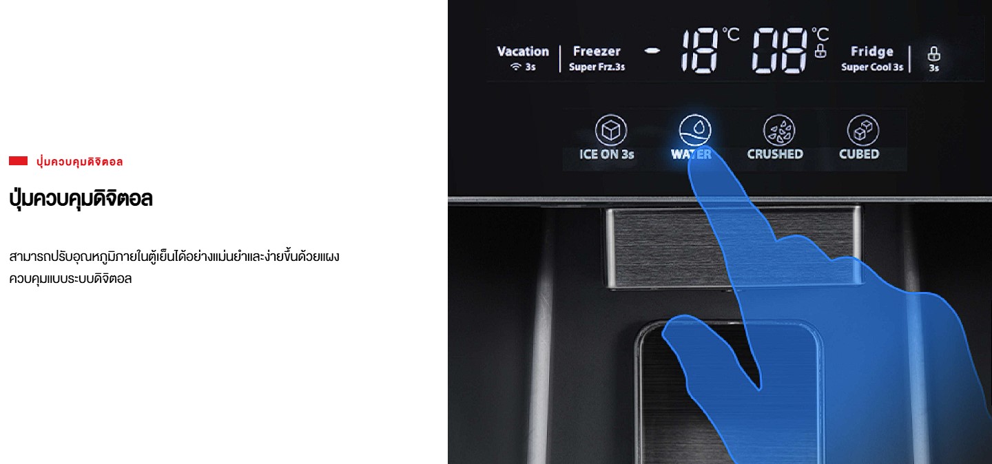 ตู้เย็น Side by Side ความจุ 20 คิว ทำน้ำแข็งอัตโนมัติและกดน้ำดื่มได้ที่หน้าตู้เย็น