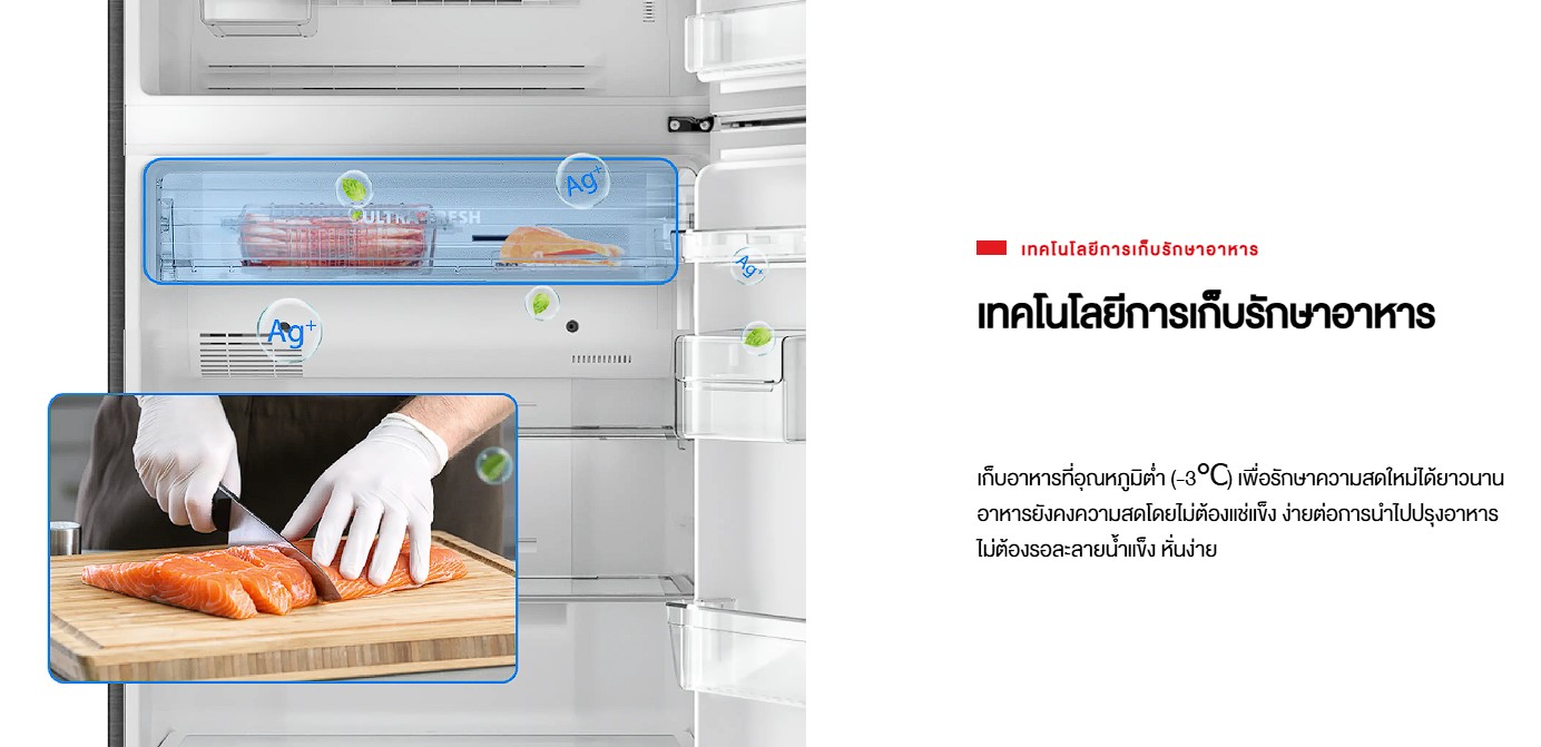 สามารถแช่อาหารแบบกึ่งแช่แข็ง ที่อุณหภูมิต่ำที่ -3°C คงความสดของอาหารได้นานขึ้น