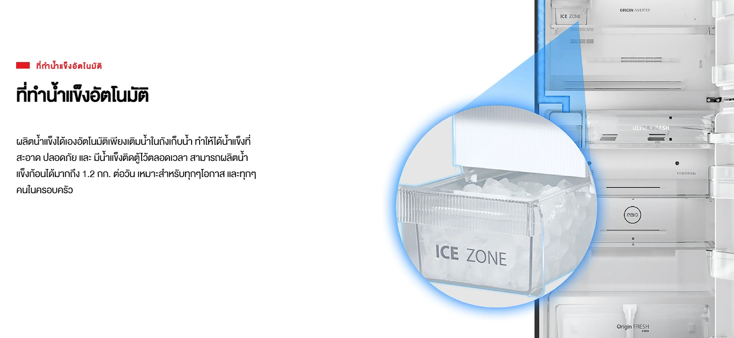 ทำน้ำแข็งอัตโนมัติ สามารถผลิตน้ำแข็งก้อนได้มากถึง 1.2 กก. ต่อวัน