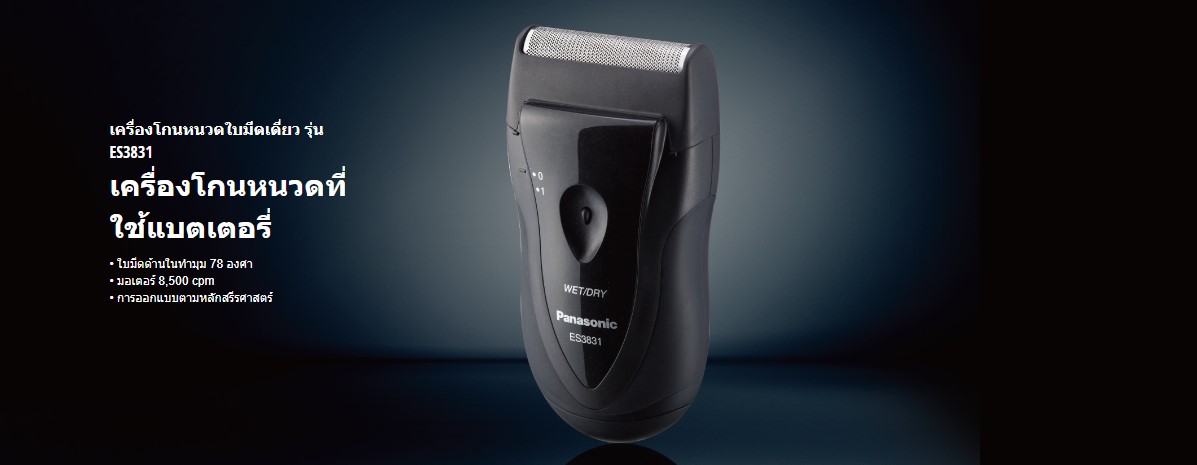เครื่องโกนหนวดไฟฟ้าPanasonic ES3831K401 ระบบ 1 ใบมีด ความเร็วมอเตอร์ 8,500 รอบต่อนาที มุมใบมีดด้านใน 78 องศา แบบแห้งและเปียก