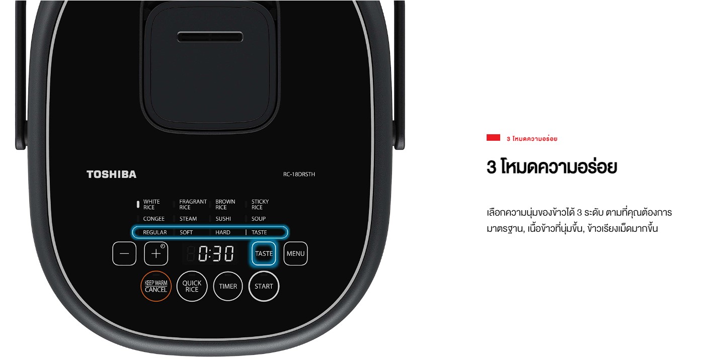 TOSHIBA หม้อหุงข้าวระบบดิจิตอล รุ่น RC-18DRSTH(H) ขนาด 1.8 ลืตร