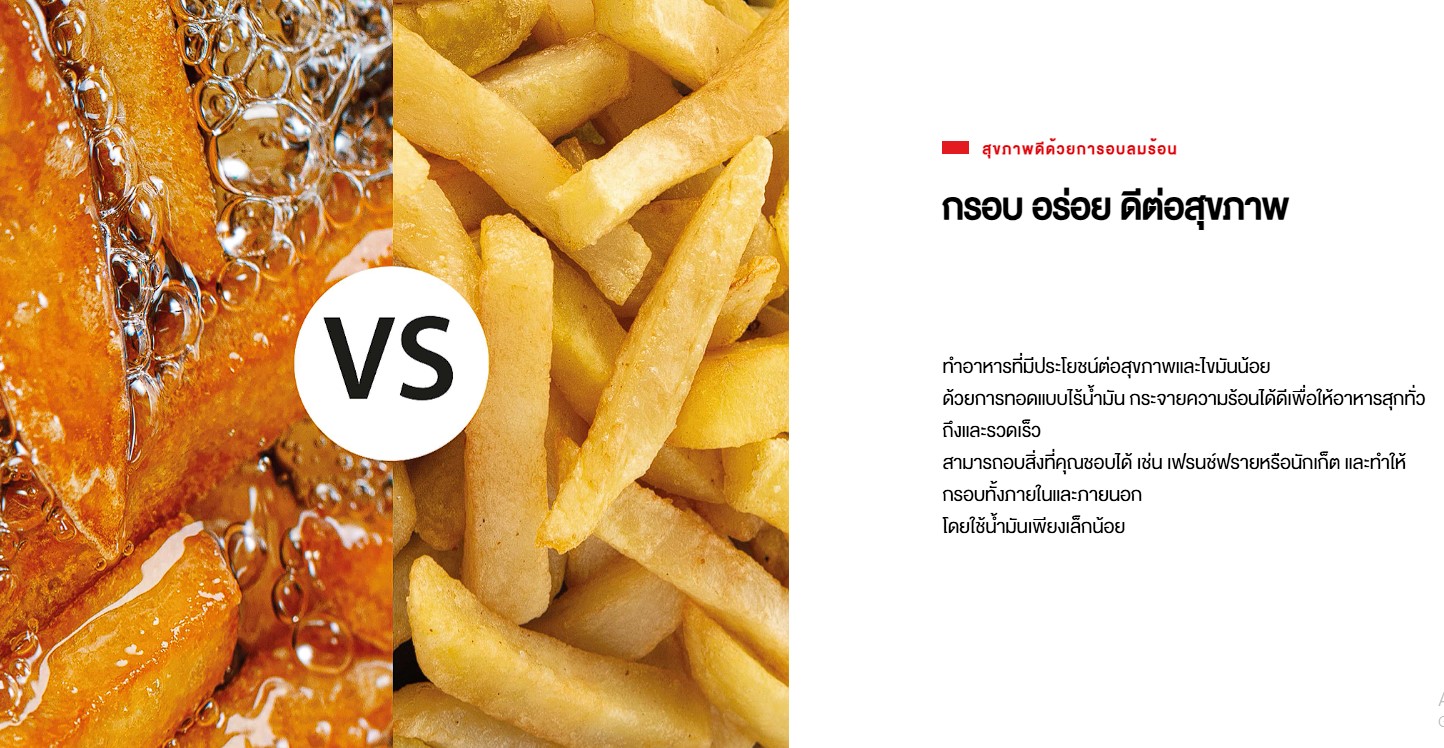 • 11 เมนูทอดไร้น้ำมัน (อัตโนมัติ) ช่วยลดไขมันในเมนูทอดได้มากถึง 85% เมื่อเทียบกับการทอดด้วยน้ำมัน กรอบ อร่อย ดีต่อสุขภาพ