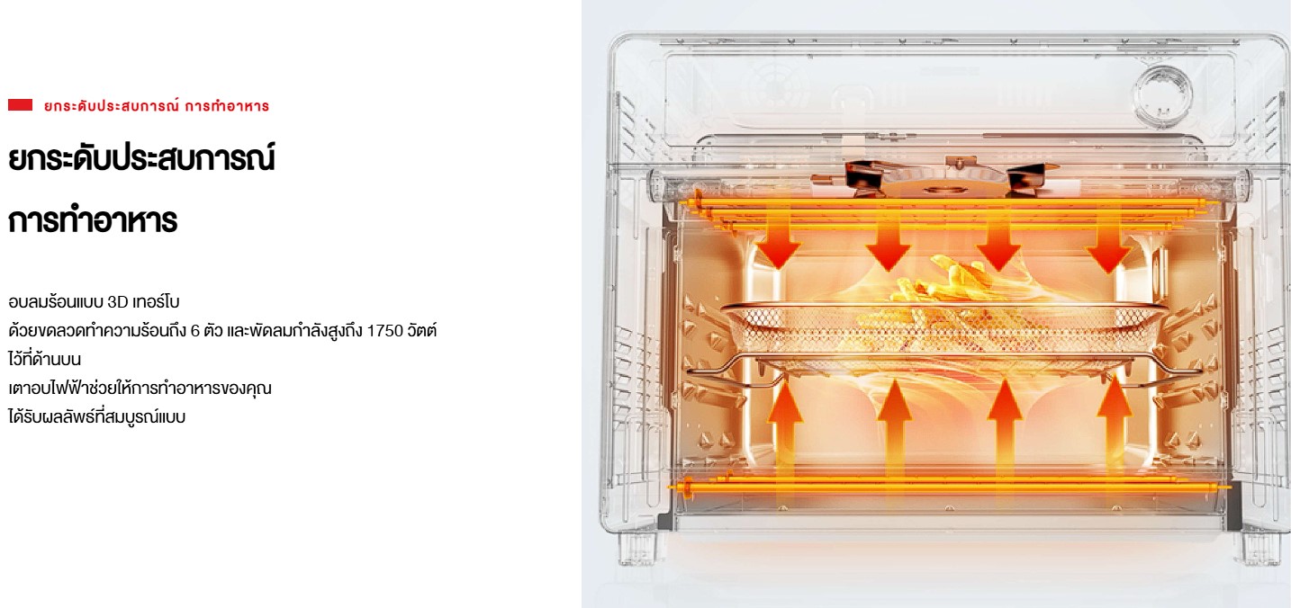 คุณสมบัติ3D Turbo Air Fry ระบบกระจายความร้อนที่ประกอบด้วยชุดทำความร้อน 6 ชุด และพัดลมกระจายความร้อนขนาดใหญ่