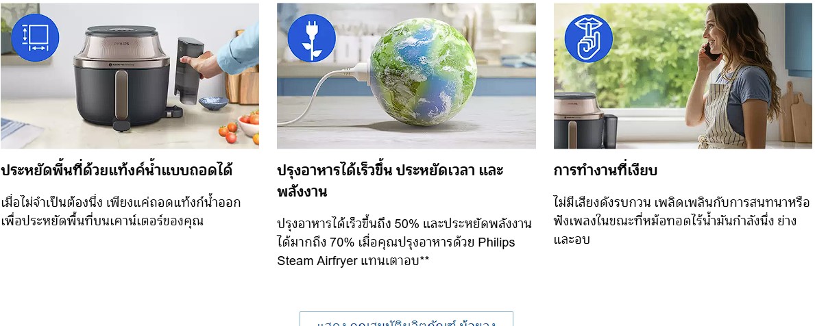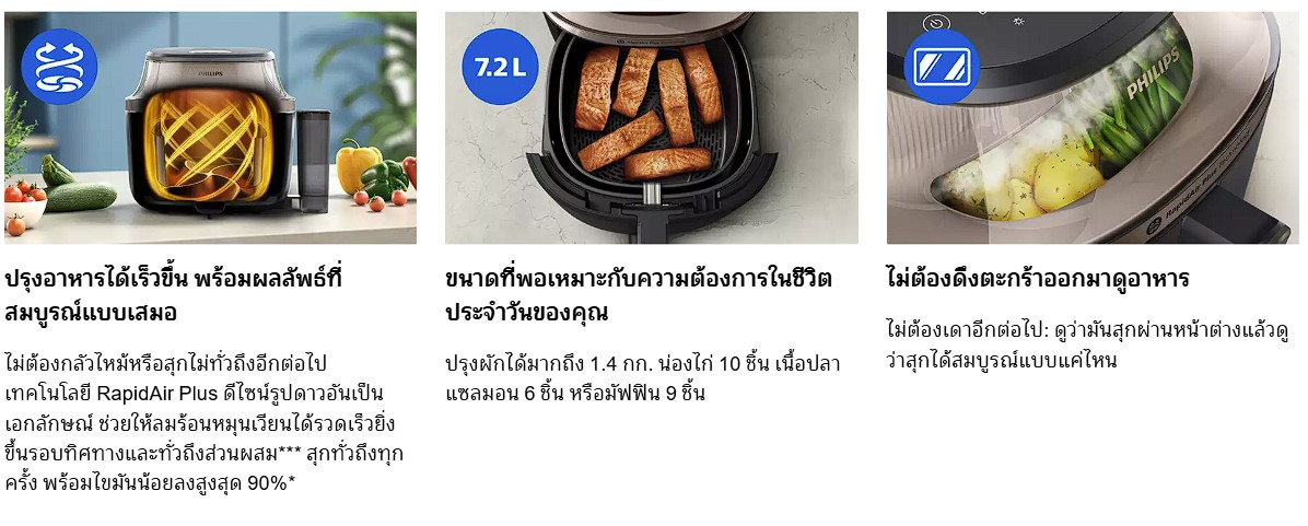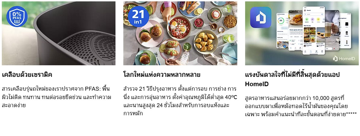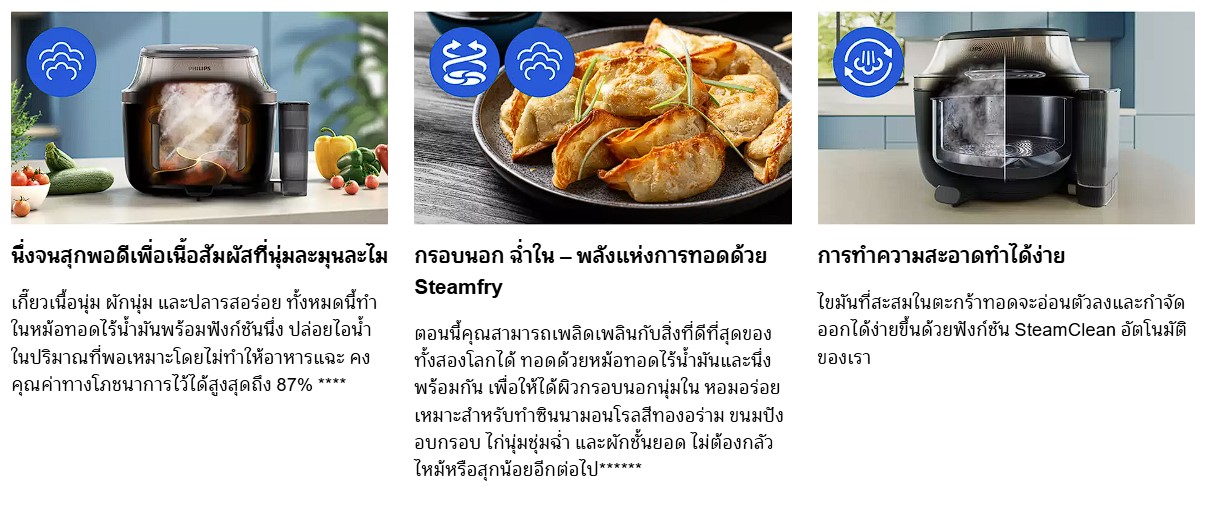 - เพลิดเพลินกับทุกเมนู ตั้งแต่ซาลาเปานุ่มฟูดุจปุยเมฆ ไก่กรอบสีทอง ไปจนถึงแซลมอนชวนลิ้มลอง เปิดประสบการณ์เนื้อสัมผัสรูปแบบใหม่ด้วยหม้อทอดลมร้อนพร้อมระบบไอน้ำ PHILIPS Airfryer with Steam รุ่น NA543/00