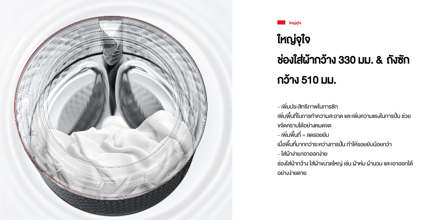 ถังซักกว้าง 510 มม. ใหญ่จุใจ